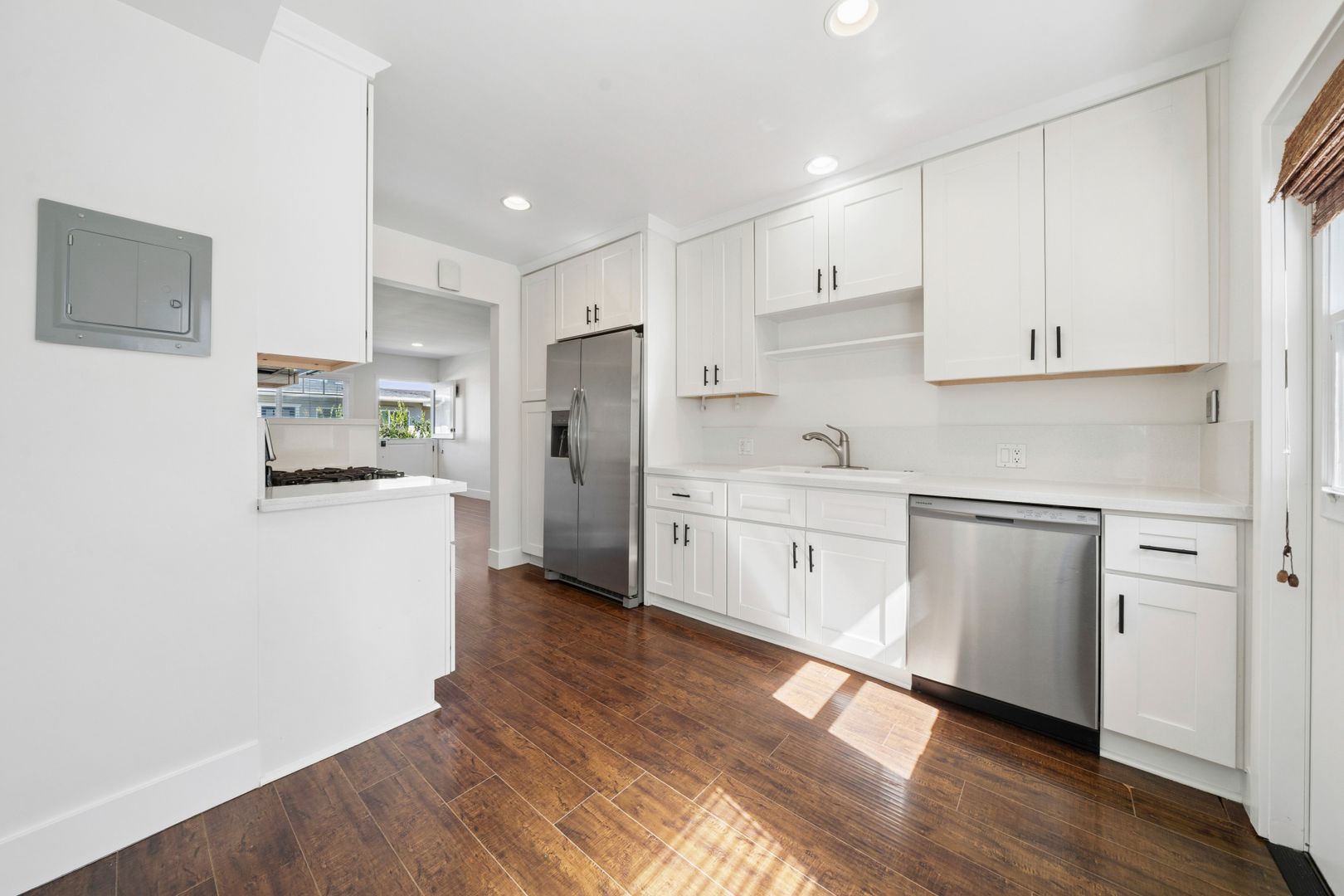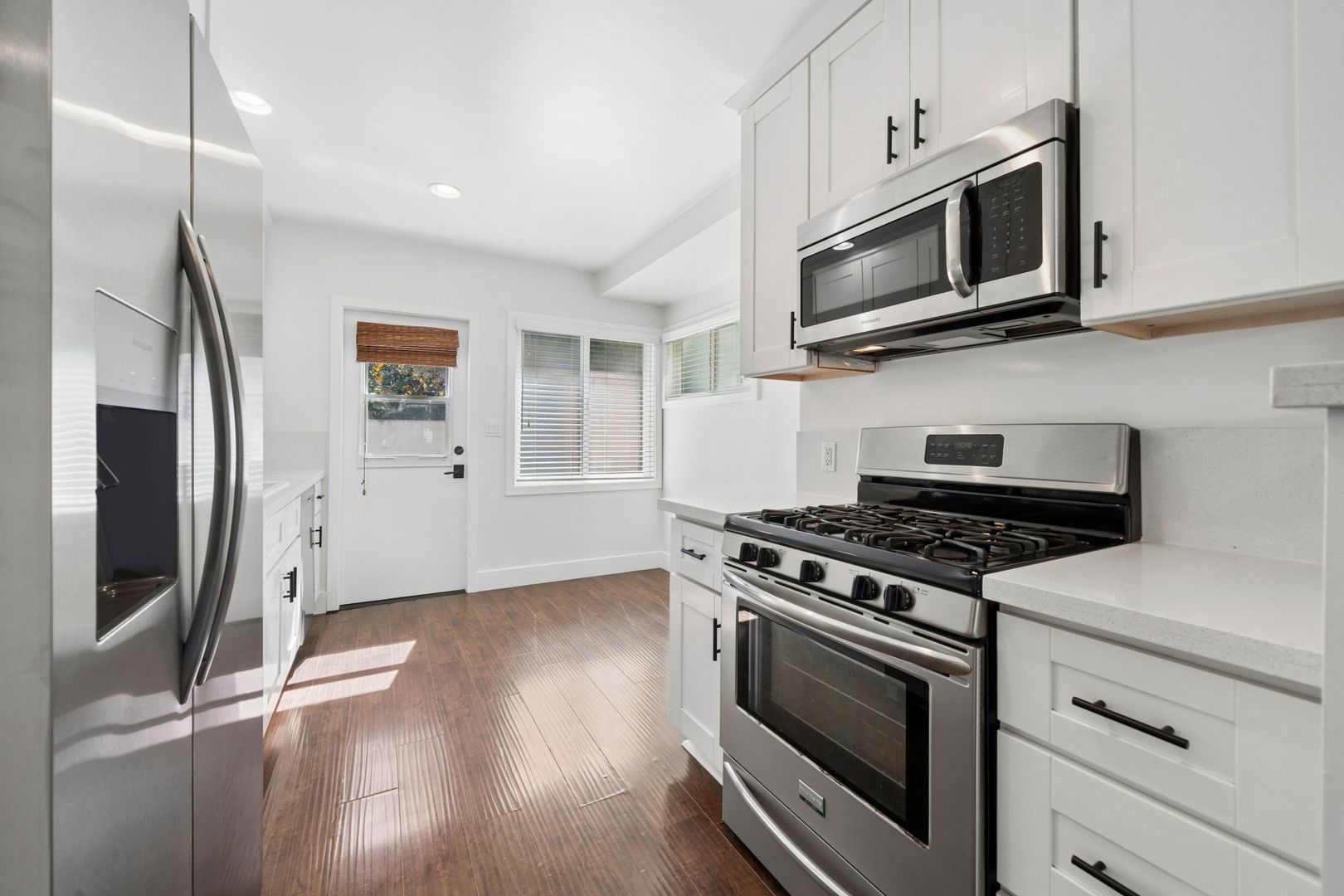Located in the desirable Newport Heights neighborhood, this charming two-bedroom residence offers a bright and inviting living space with beautiful hardwood flooring and abundant natural light throughout. The thoughtfully updated kitchen features crisp white cabinetry, stainless steel appliances, and a brand-new refrigerator, providing both style and functionality for everyday living. The home also includes built-in storage cabinetry in the hallway along with a convenient built-in desk—perfect for a small workspace or organization area. Both bedrooms feature classic wainscoting accents and mirrored closet doors, adding character while enhancing light and space. Step outside to a large, private backyard, ideal for relaxing, entertaining, or enjoying outdoor dining. Additional highlights include a single-car garage and convenient washer and dryer hook-ups. With its tasteful upgrades, functional features, and prime Newport Heights location, this residence offers a wonderful blend of comfort and charm.