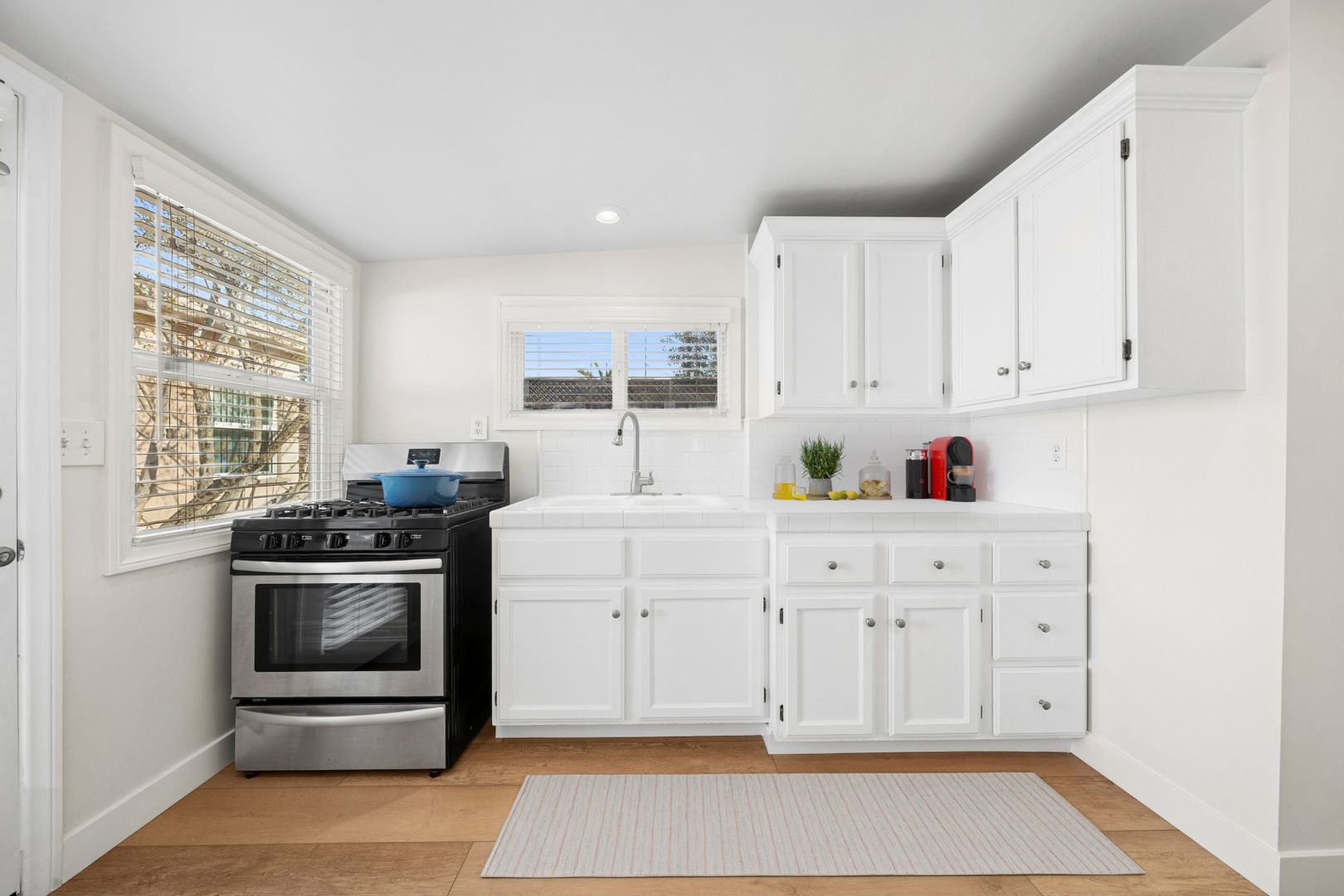 Additional conveniences include on-site coin-operated laundry and one designated parking space. Situated on a large lot, this home is ideally located near the boutiques, restaurants, and local favorites along 17th Street.