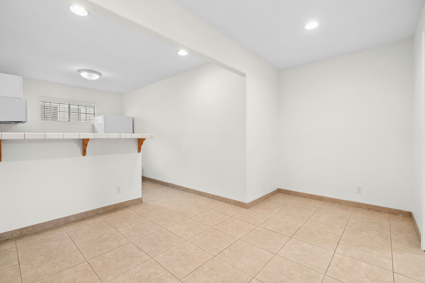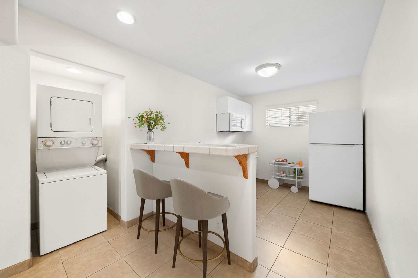 Perfectly situated near everything 17th Street has to offer, this charming studio apartment blends comfort and convenience in the heart of Eastside Costa Mesa. The home features hardwood and tile flooring, recessed lighting, and a spacious walk-in closet for ample storage. The large bathroom includes a walk-in shower, while the separate kitchen and dining area is equipped with a refrigerator and a high-top counter off the kitchen — perfect for enjoying your morning coffee. Additional highlights include a stackable washer and dryer, a private patio for outdoor relaxation, and paid utilities for added ease.
