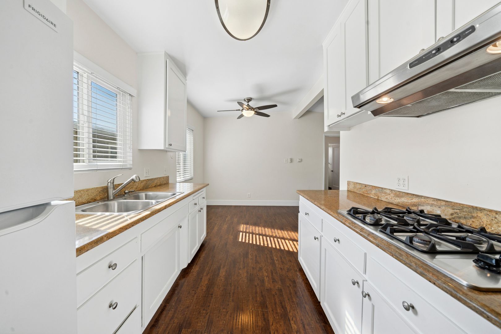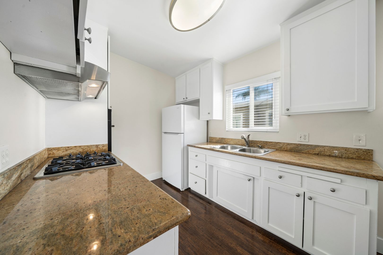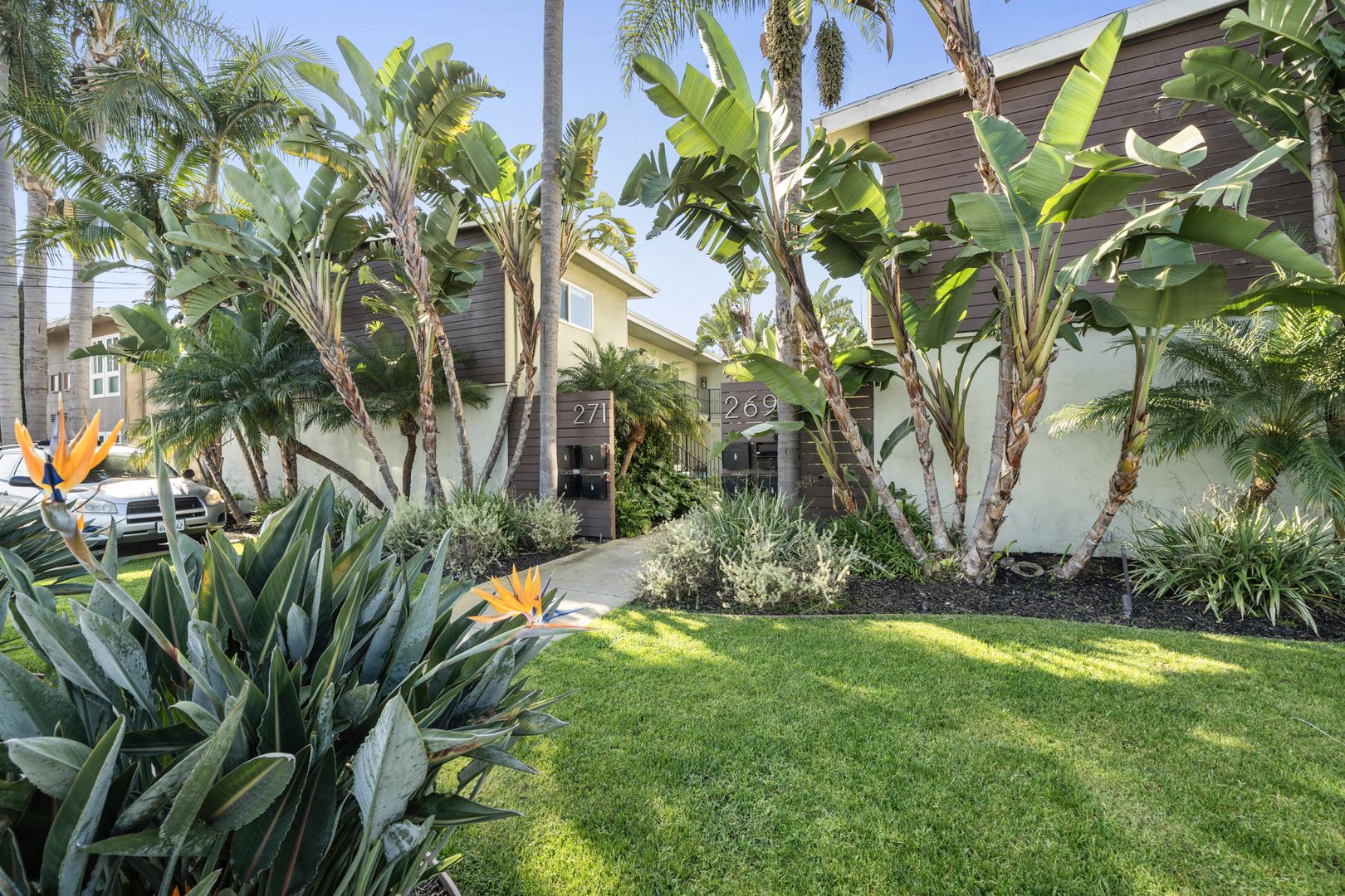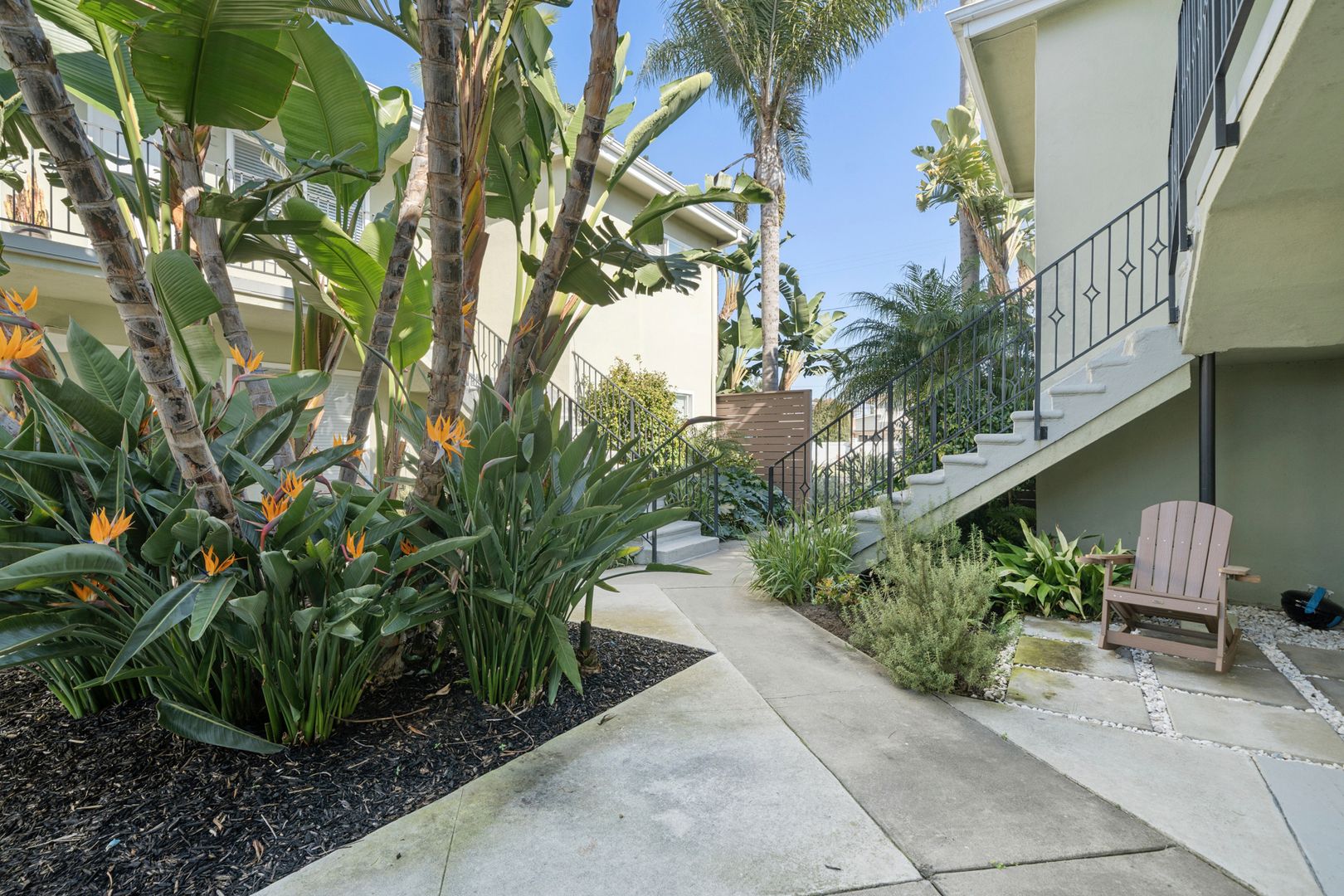 With modern architectural details, this light-filled home offers a seamless flow from room to room. The spacious layout features a large living room, a separate dining area, and two generously sized bedrooms with mirrored wardrobe doors. Finishes include hardwood flooring, granite countertops, a stainless steel gas range with built-in oven, refrigerator, and contemporary fixtures throughout. The beautifully landscaped grounds showcase mature palm trees and Birds of Paradise, creating a serene setting. The residence includes one assigned carport with storage and access to a community laundry facility. Ideally located near world-famous beaches, the scenic Back Bay trails, Lido’s premier boutique shopping, and the renowned dining along 17th Street—truly surrounded by everything you need.